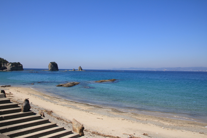 先日クアハウス白浜様の打合せの際、素材用に海の写真を撮りに行きました。 白浜には個人的に行った事は無かったのですが、とても澄んだ海に驚きました。 ただ水は冷たかったです。 地上の気候の2ヶ月遅れで海の水温が変わるそうなので、 ちょうど5月~6月くらいから足を浸けても気持ち良い感じになるみたいです。
