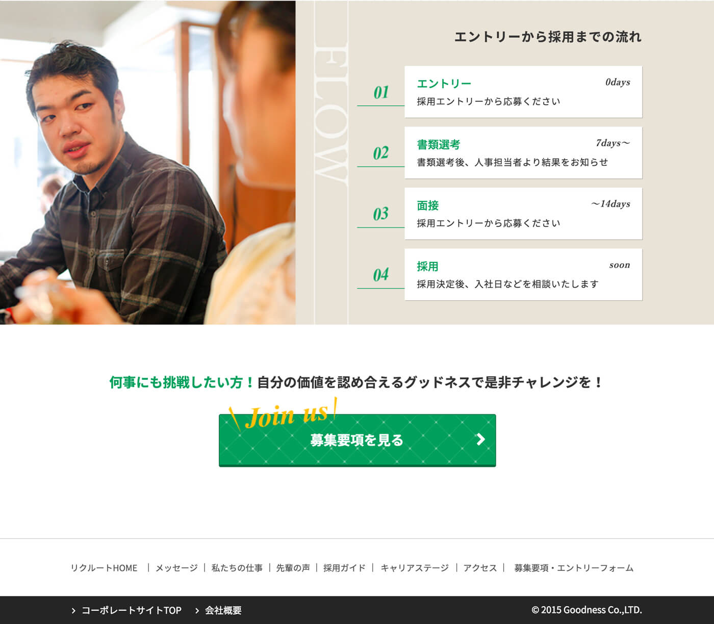 グッドネス 採用サイト 公開:2015年 / http://www.good-ness.co.jp/recruit/