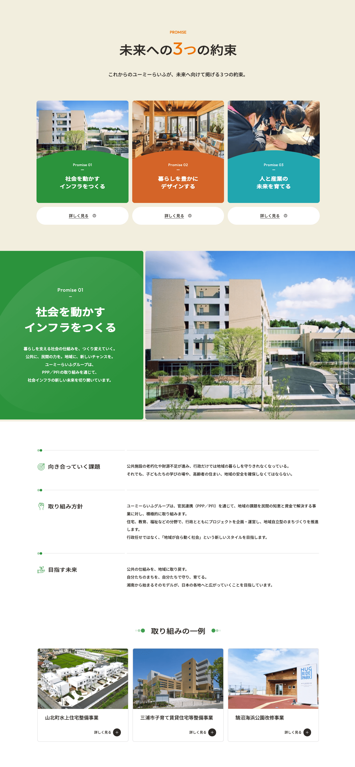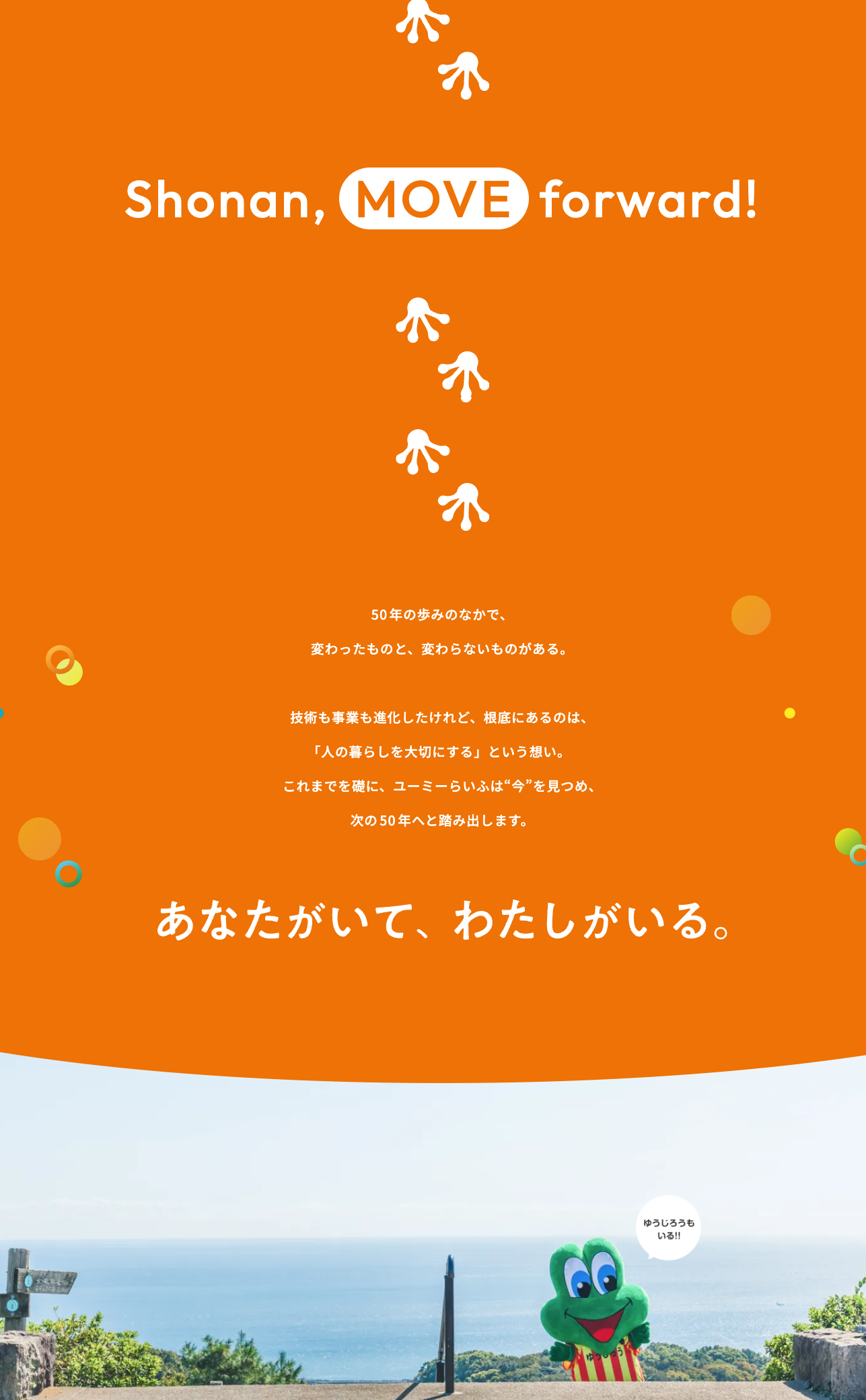 湘南エリアで総合不動産事業を軸に、多角的な事業を展開されている「ユーミーらいふグループ」様の50周年特設ページを制作しました。